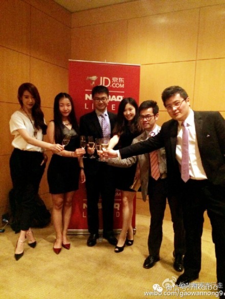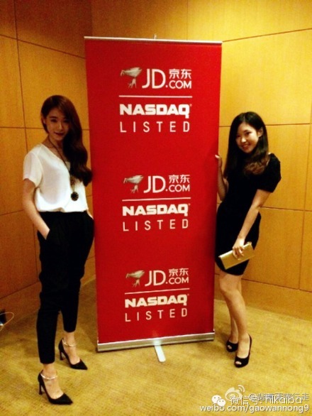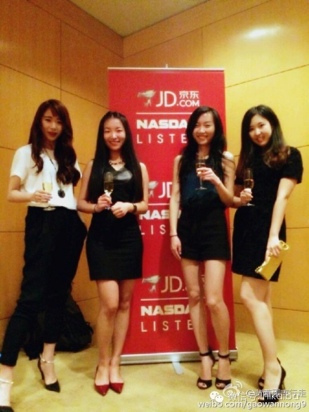 但是,奶茶 mm 真的木有去给情郎加油吗?我看不是的。这不,很快,微博上就有奶茶哥大的童鞋晒出照片了,证明奶茶 mm 低调地出现在了京东 IPO 庆功宴的现场。