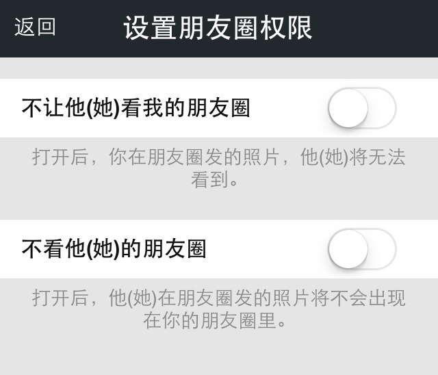 这么做的副作用是,你也不知道哪些人把你给屏蔽了,不过没事,即使别人屏蔽我,对我没有任何损失。我的建议是,如果屏蔽我,干脆把我从联系人里删除,我也好删掉你,以便给别人腾地方,毕竟还有人想看我的朋友圈内容还进不来呐。
