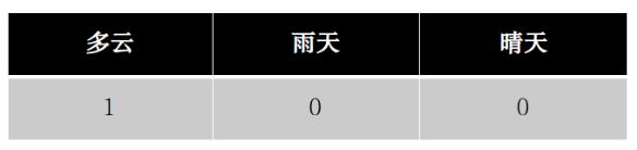 即可得下一状态多云的概率为0、1,雨天的概率为0、5,晴天的概率为0、4,雨天的可能性最大