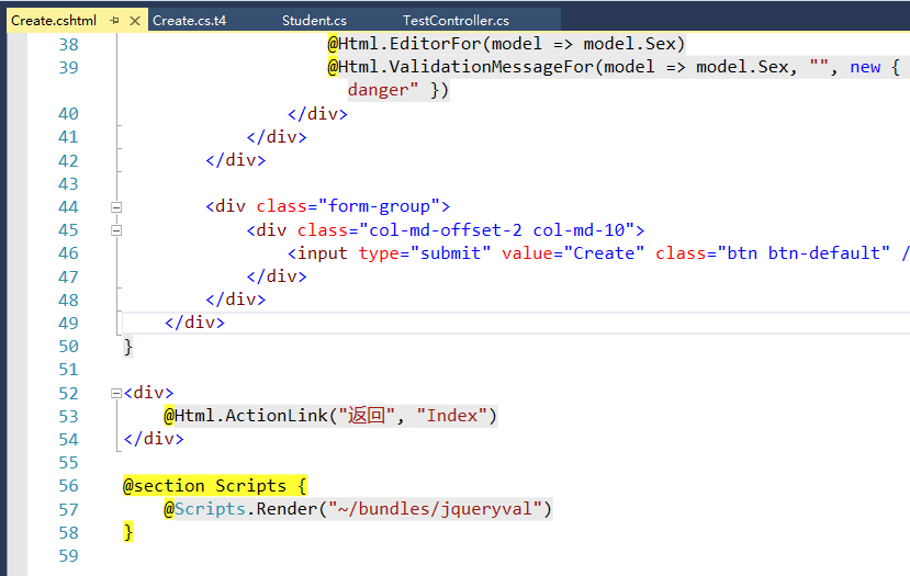 这里我们尝试将Create.cs.t4模板中的返回链接修改为中文显示