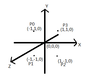 那么TriangleIndices="0 1 2 2 3 0" 按照图片显示的可以翻译成 “P0 P1 P2,P2 P3 P0”,或者 0 对应 (-1,1,0),1 对应 (-1,-1,0),以此类推。