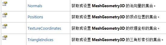 说说 MeshGeometry3D 里 常用的 四个属性。