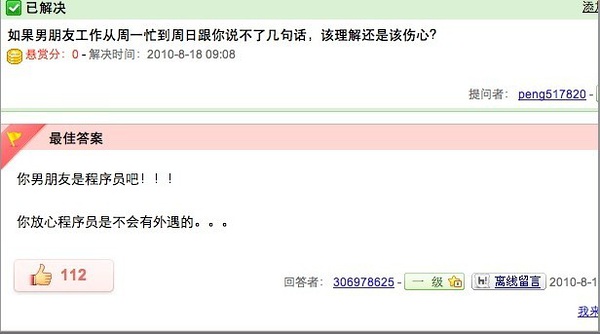 程序员相亲,说:我是程序员。美女:程先生你好。程序员:叫我序员就好了