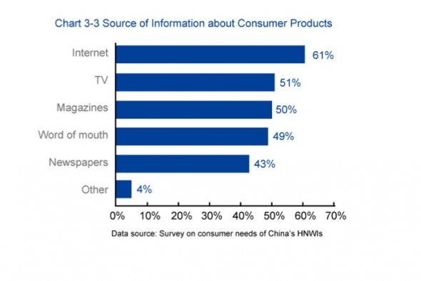 虽然中国大多数资产净值较高的富人仍旧不网购,不过互联网可是他们了解消费品信息的首选来源。
